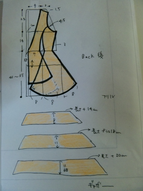 ・後ろフリルを作る。