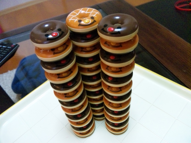 おさんじでワッフル食べて、しょうくんのお迎え行って、おけいこに連れてってる間に帰って来るかなとムスメお留守番。医/龍の再放送見ながら一人遊び(マチガッタドーナツの使い方)しかしママ一人で帰宅。