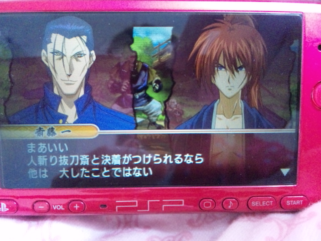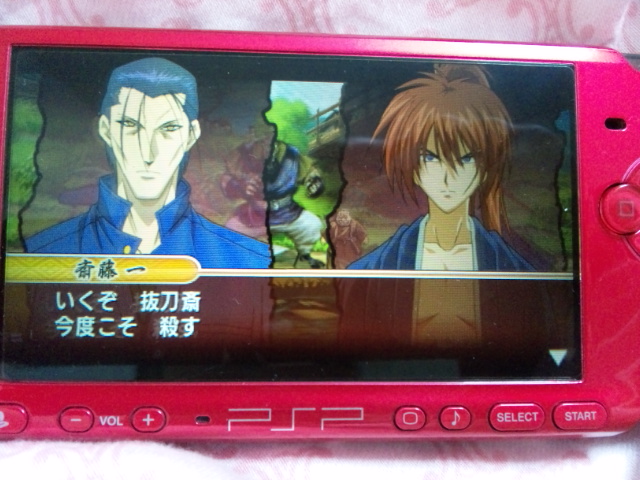 てか、この時に繰り出す超必殺の発動の際、隊士服のアニメ画がまず出るんですが、「単に白目剥いてるパパ」ですげぇガッカリ感です。ちが、違うじゃん!そこ笑かす所じゃないじゃん。ひでぇ、ひでぇよ。アタシでももっとまともなパパ描けるよ!?とか思ってしまう。てか、コミックスの絵使ってよ!って思う。どこもかしこも和月先生じゃあかんの!?先生のあの頃を振り返りたいわ!折角PSPの画面きれいなのに、あのアニメ画じゃあ活かされねぇなー…。