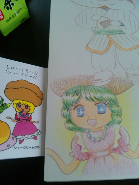 画用紙におむすびまんとかロールパンナちゃんとかシュークリーム姫とか描いてきました。クーピーとか久しぶりだわ。姫の髪は黄色だったんだけど、ゆいかが黄色のクーピー放さなかったので緑で塗ってしまった。きっと抹茶シュー。