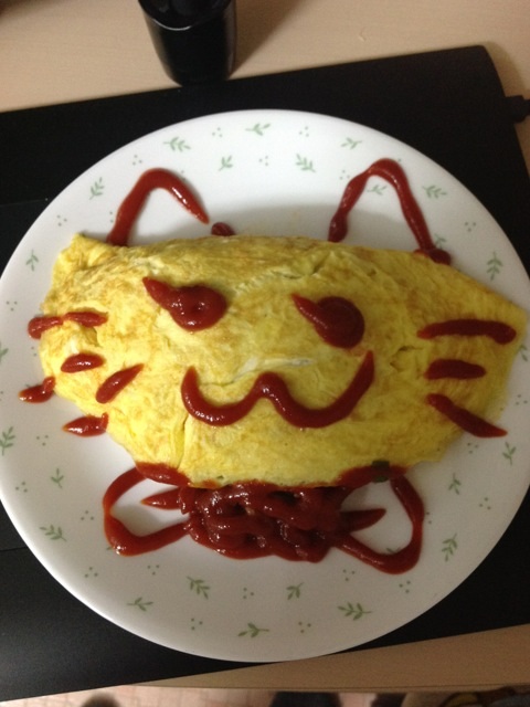 そうそう、こないだポンバシの某冥土喫茶がぼったくりキャバクラでしかも15歳の女の子を働かせていた問題で、舌先三寸のオーナーが逮捕されたというニュースを見まして。そこではオムライスが4000円だそうです。すげぃ。アタシだったら580円位でオムライス作ってあげるのになーと思って夕食に作ってみました。にゃんこオムライス。味はまぁ、普通だよ。玉ねぎに比べてピーマンを多く使い過ぎた感じですが。