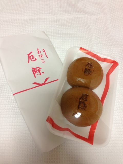 厄除けまんじうはとりあえず2こ。昨日バイト先で梅ヶ枝餅貰ったとこでさー。しかも家に御座候もあるからあんこ飽和してんすよ。
