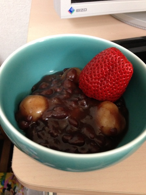 本当はイチゴ大福にしようと思って白玉粉をハァハァ言いながらこねてこねてこねまくっていたのに、ゆであずきの缶開けたらサッラサラのんでてきてこねられなかったというオチなんですが。