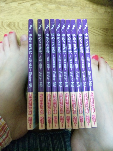 つい、背表紙を並べて写真撮る勢い。左親指の爪切ったところだったので、ここだけペディキュアなくて不細工でスイマセン。乙女失格。