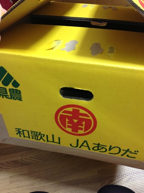 背が高くて、あの、完パコにするには荷物が足りなくて、かといってA4*2の浅い箱では入らなくて、B5の箱を潰すのが惜しくて近所のスーパーに行ったらみかんの箱がいpっぱいございましてですね。